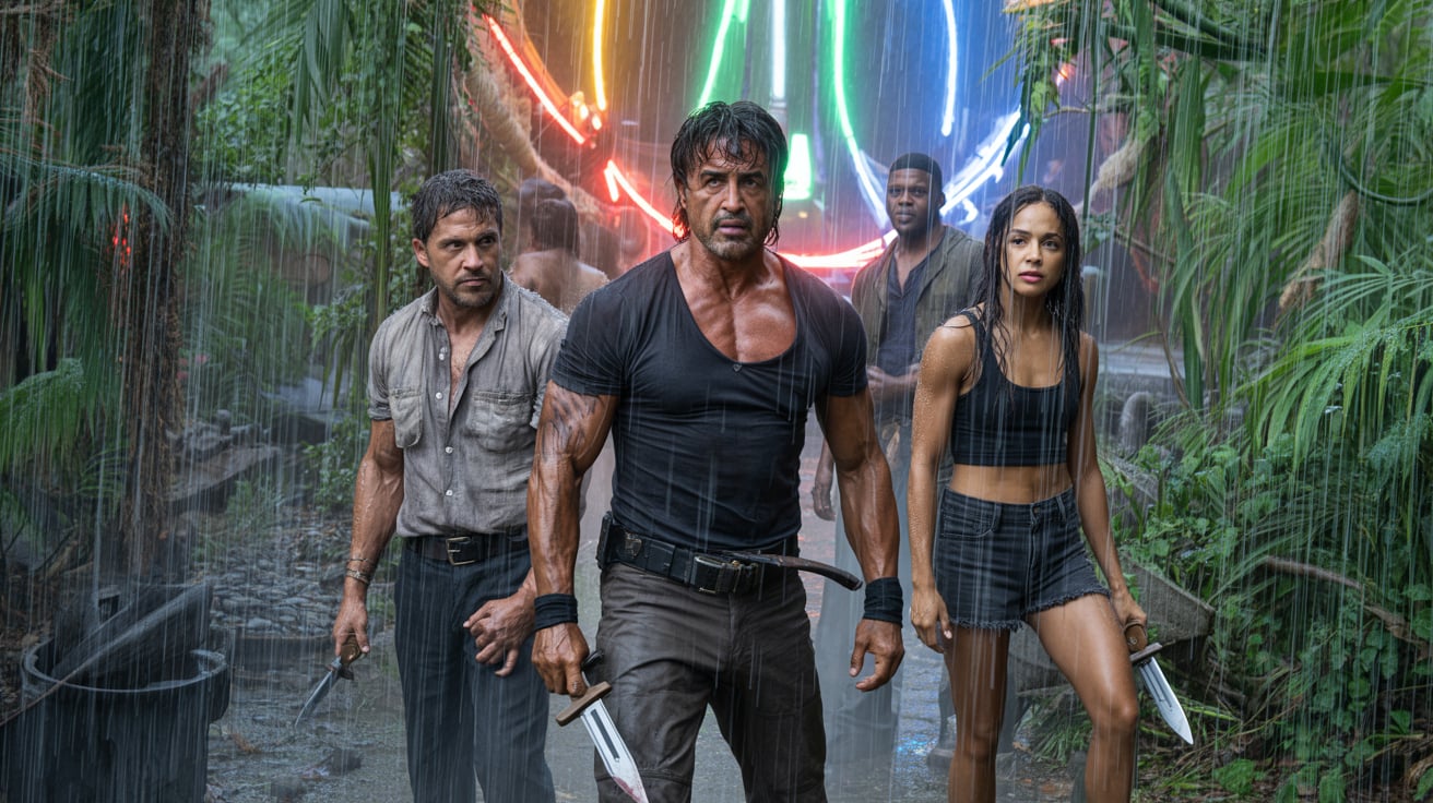 Stallone’s presence is quieter, yet heavier than ever; every scar etched on his body feels like a story carved in stone. Jacob Elordi delivers a surprising performance, layering raw idealism with simmering rage. Zoë Kravitz brings sharp intrigue as a rogue CIA analyst torn between truth and obedience, while Michael Peña grounds the chaos with empathy as a former soldier turned activist.